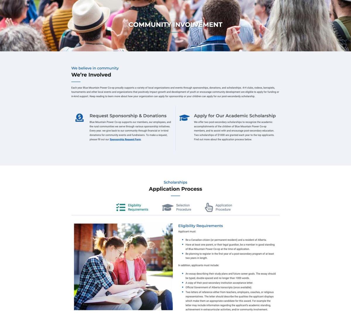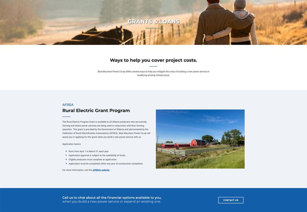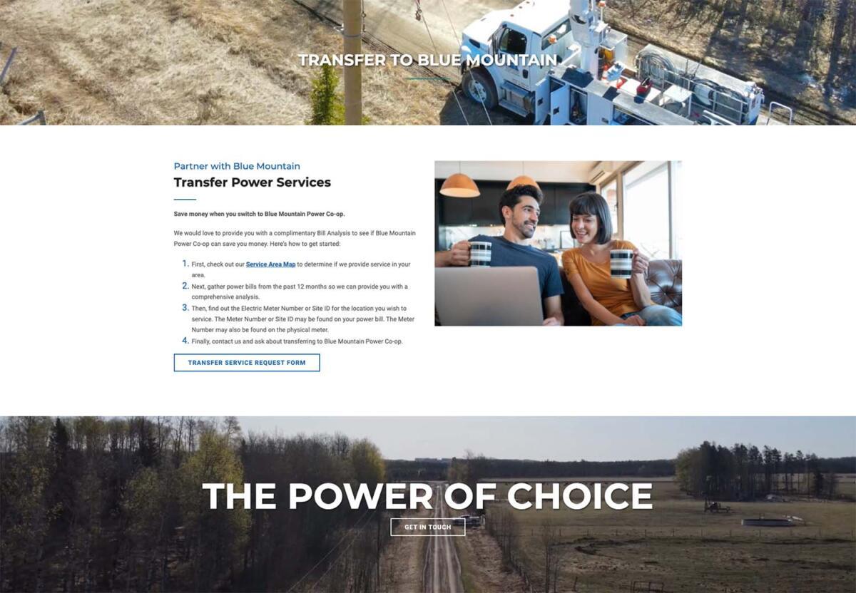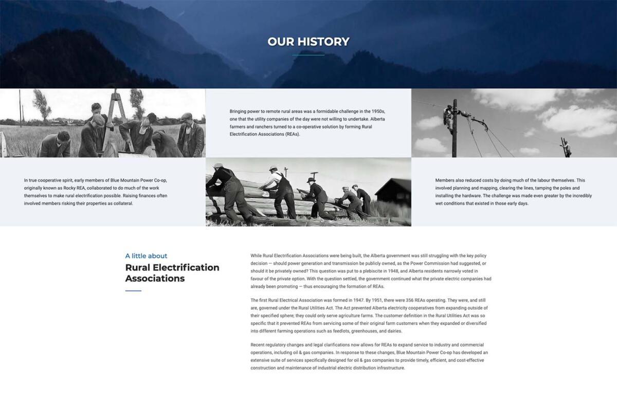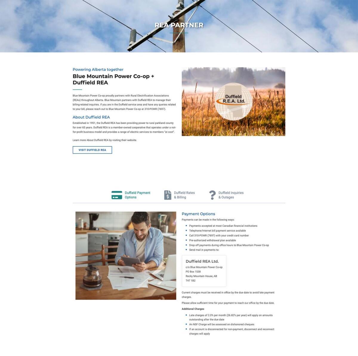 I worked with Blue Mountain Power Co-op (as developer/owner of Launch Digital Marketing) to develop a new website. Blue Mountain Power Co-op is a power service provider location in Rocky Mountain House, Alberta. The goal of the website was to help expand their services, reach new clients, and provide a more efficient avenue for sharing information.