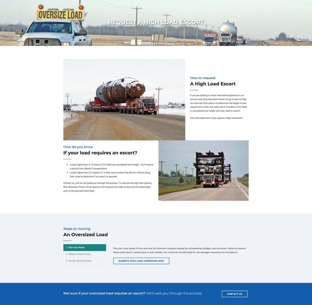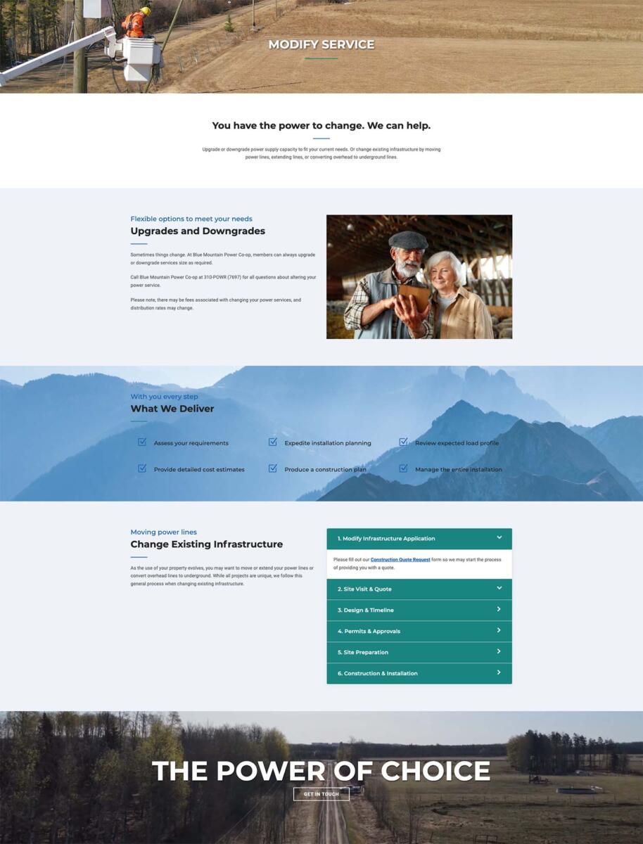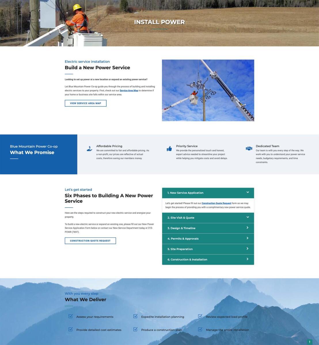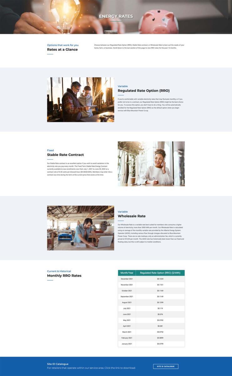 I worked with Blue Mountain Power Co-op (as developer/owner of Launch Digital Marketing) to develop a new website. Blue Mountain Power Co-op is a power service provider location in Rocky Mountain House, Alberta. The goal of the website was to help expand their services, reach new clients, and provide a more efficient avenue for sharing information.
