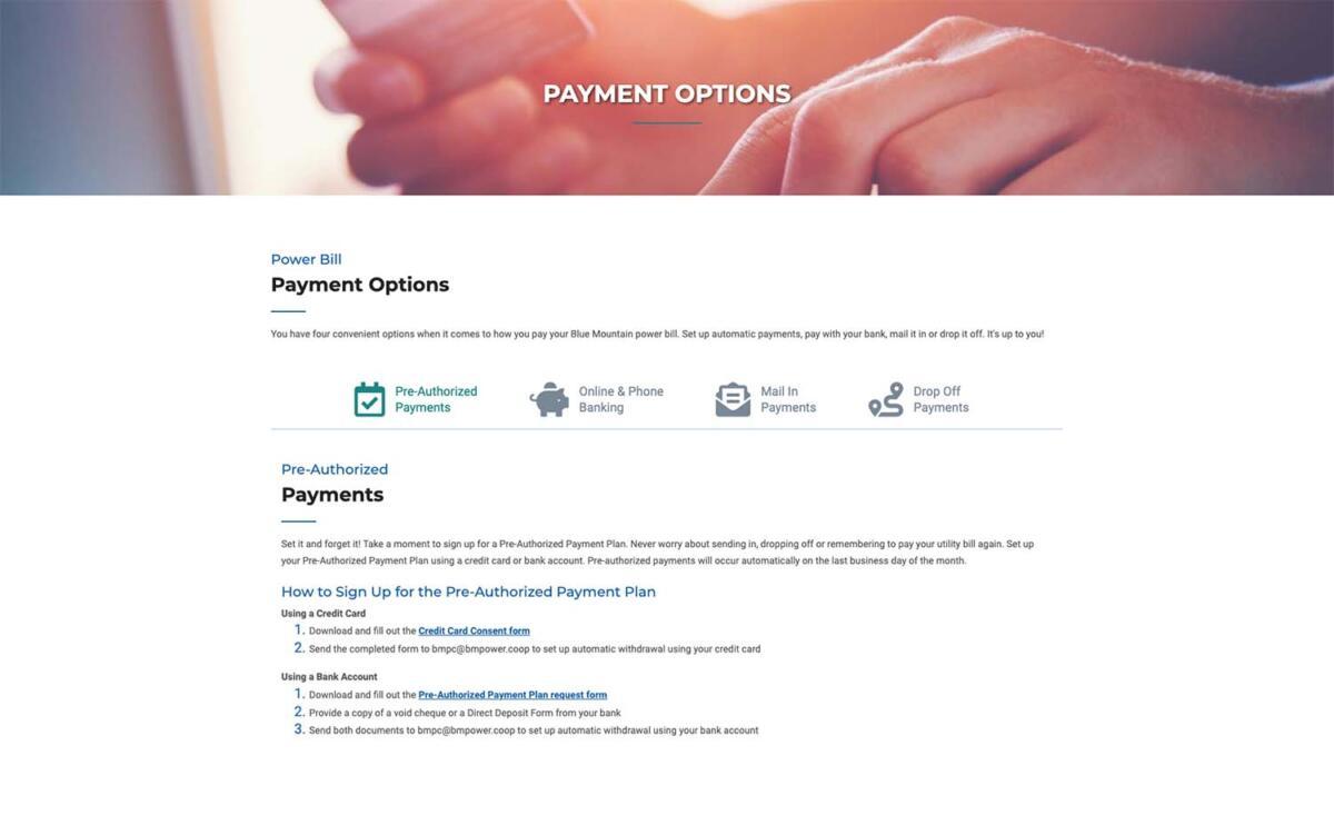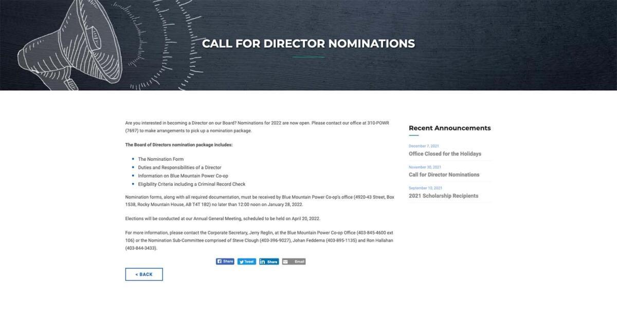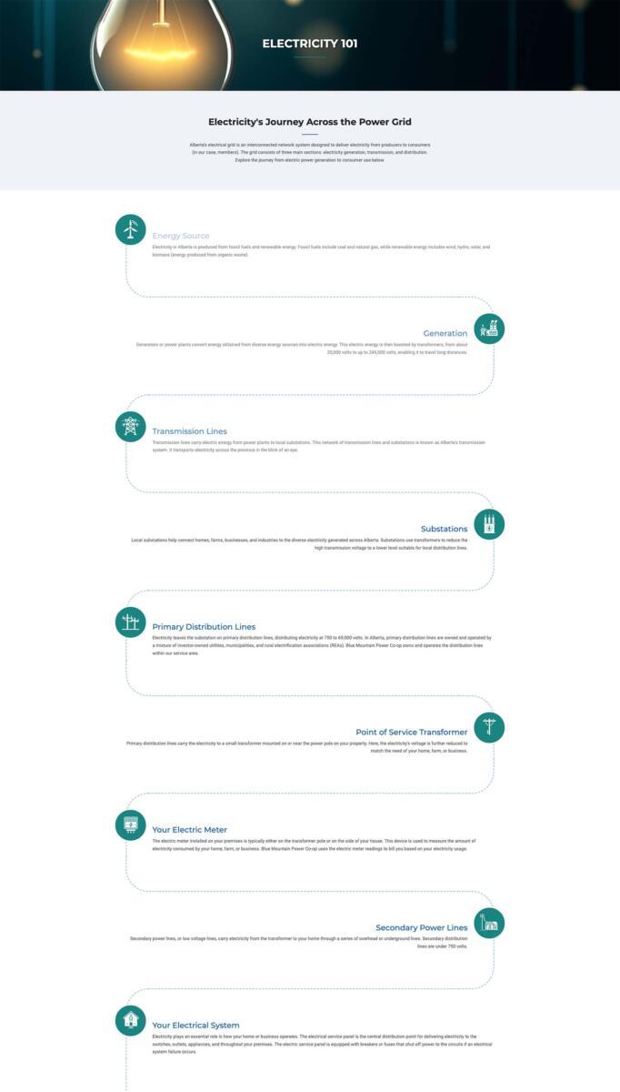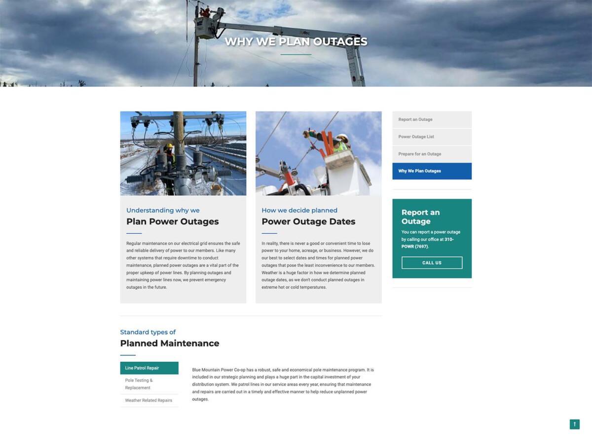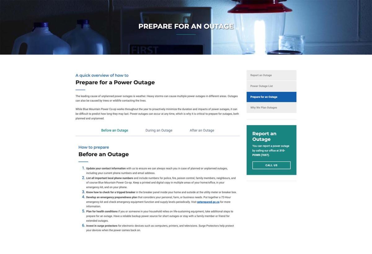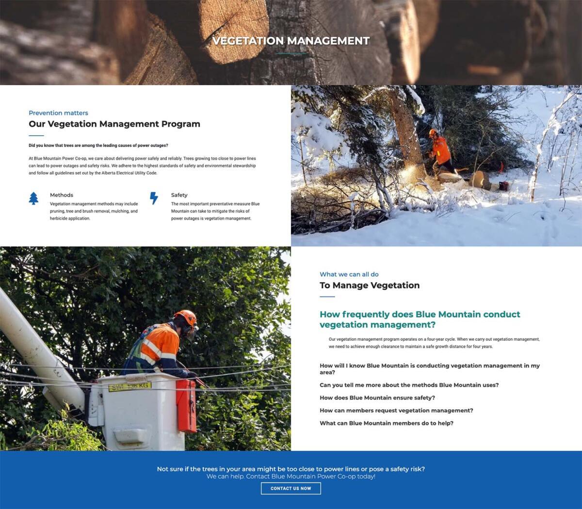 I worked with Blue Mountain Power Co-op (as developer/owner of Launch Digital Marketing) to develop a new website. Blue Mountain Power Co-op is a power service provider location in Rocky Mountain House, Alberta. The goal of the website was to help expand their services, reach new clients, and provide a more efficient avenue for sharing information.