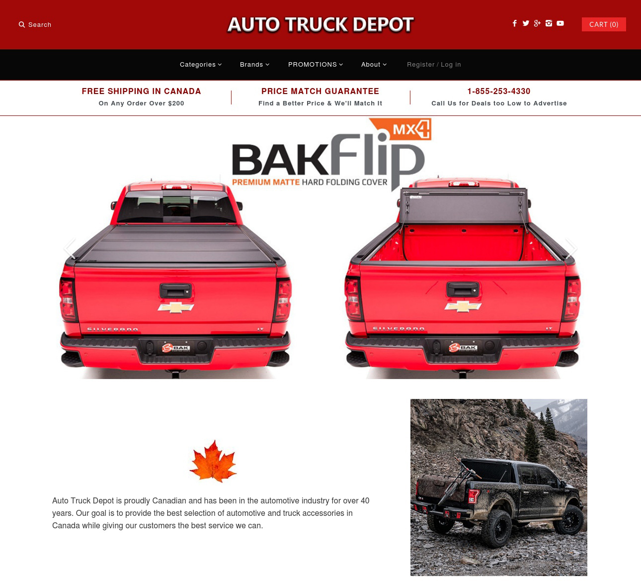 Designing an online e-commerce platform for Auto Truck Depot, located in Calgary, Alberta, was one of my first major web projects. I was hired to re-design the company’s website and assist with online marketing to help promote and sell automotive parts and accessories. Using Shopify, I re-created an e-commerce website with the ability to scale as more products were introduced.