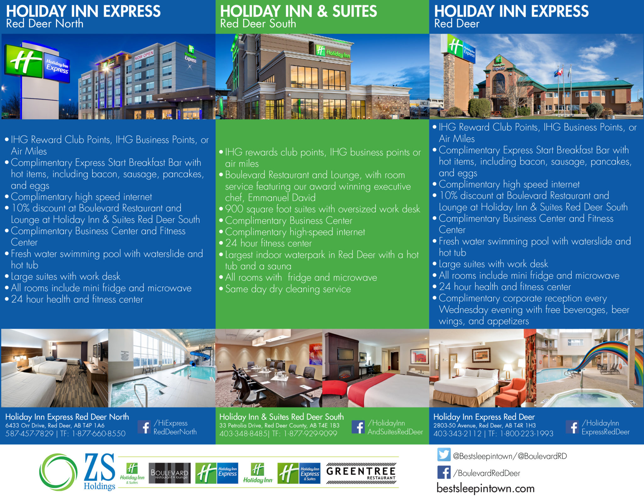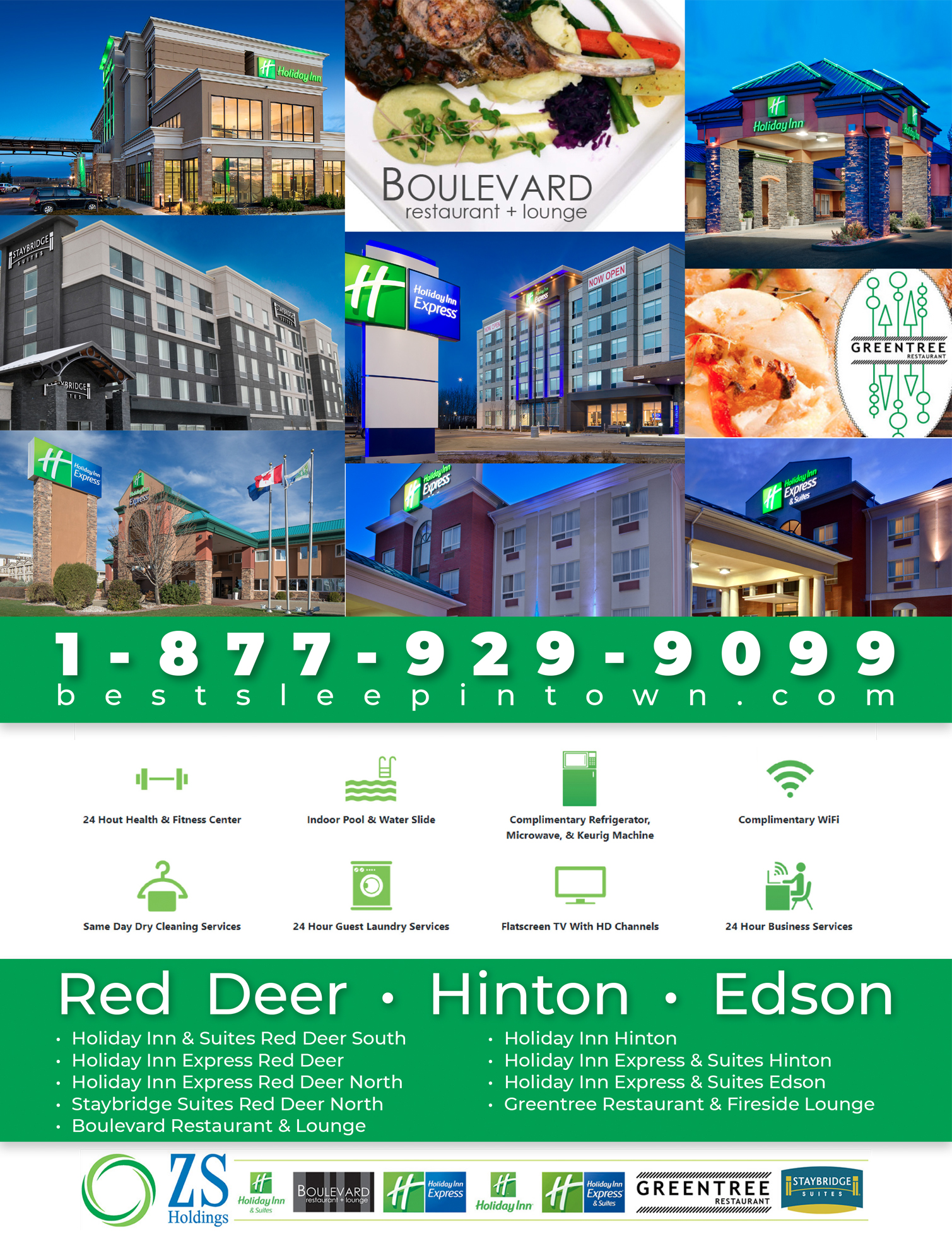 I have created various information sheets for hotel properties in Red Deer, Hinton, and Edson, Alberta, which are owned and operated by ZS Holdings. Here is a small collection of some of the items I have completed using both Adobe Photoshop and Indesign.
