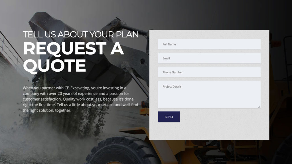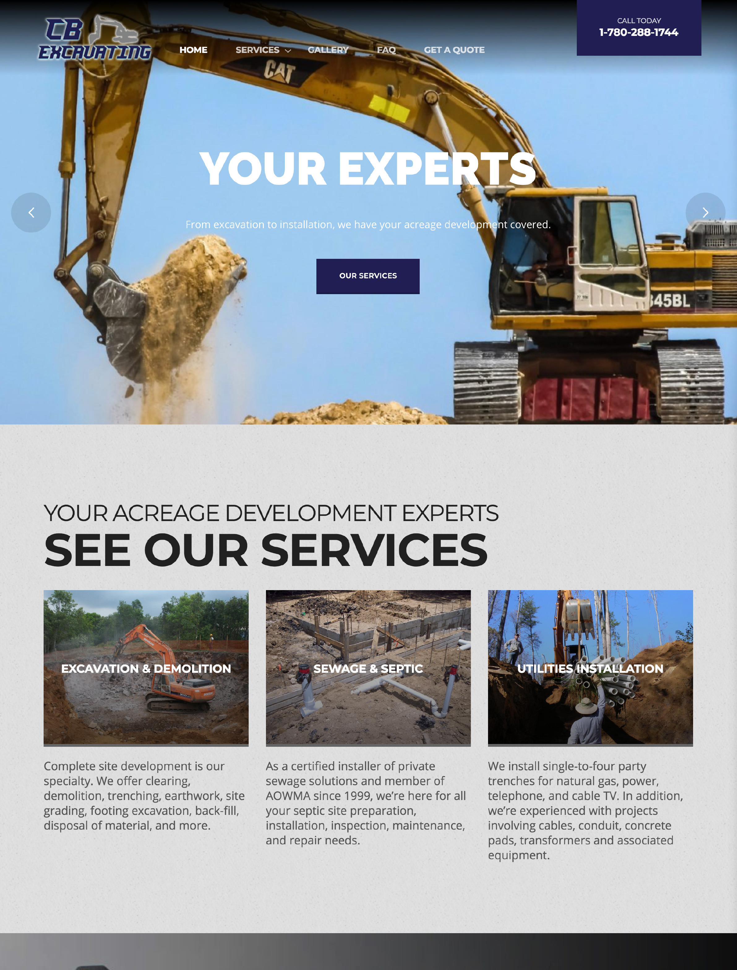 We helped CB Excavating showcase their business online by providing them with a full website outlining their services and providing a way for customers to reach them.