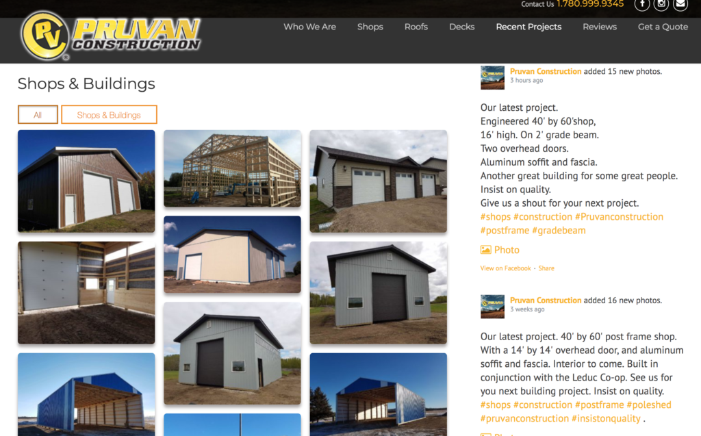 I helped to build an online presence for Pruvan Construction, a contracting company based out of Leduc, Alberta, by providing a website to showcase their services along with a marketing plan to attract more customers. I designed their website, helped to set up and provide support with social media, and provided photography and graphic design services for use on digital platforms.